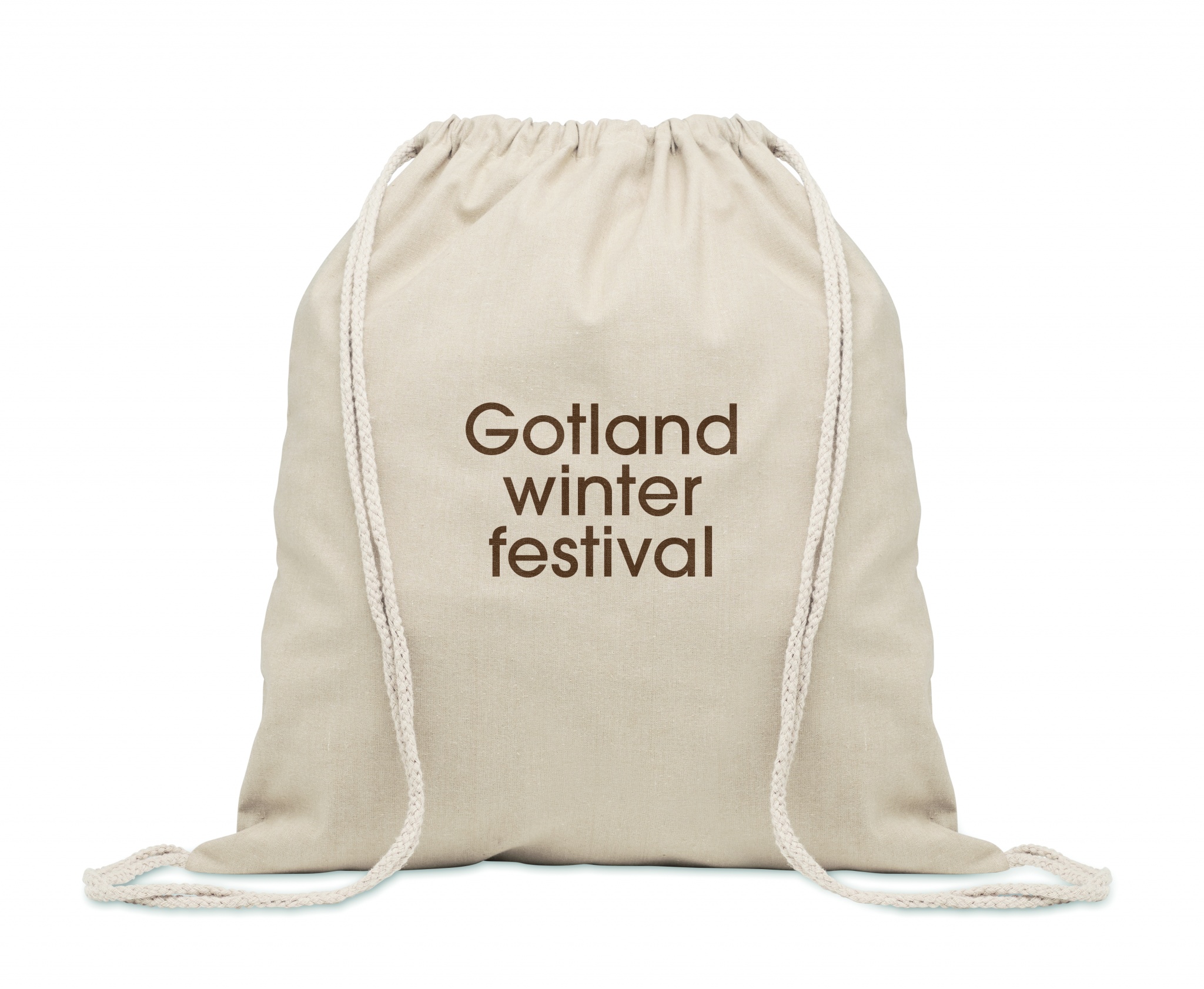 Рюкзак-мешок из переработанного хлопка (70%) и RPET (30%) с длинными ручками. 140 гр/м².