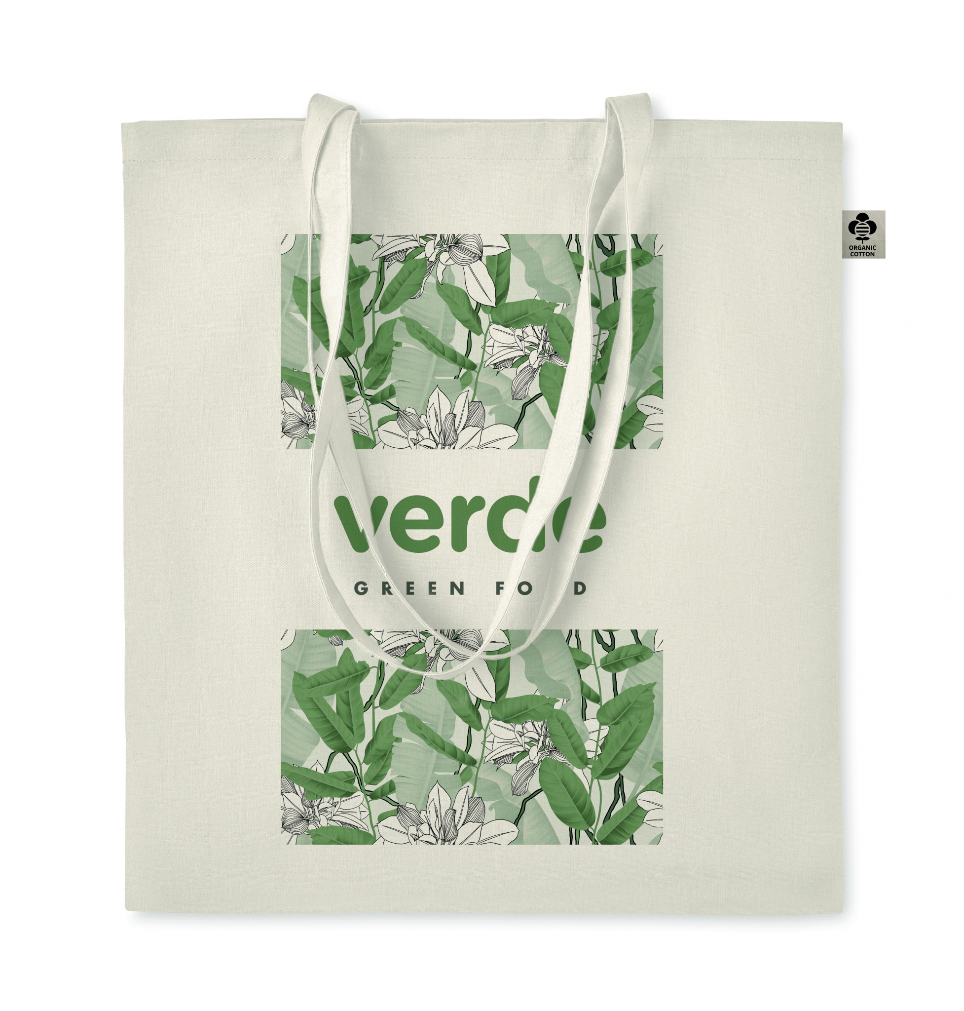 Сумка для покупок из органического хлопка с длинными ручками. 140 гр. / м².