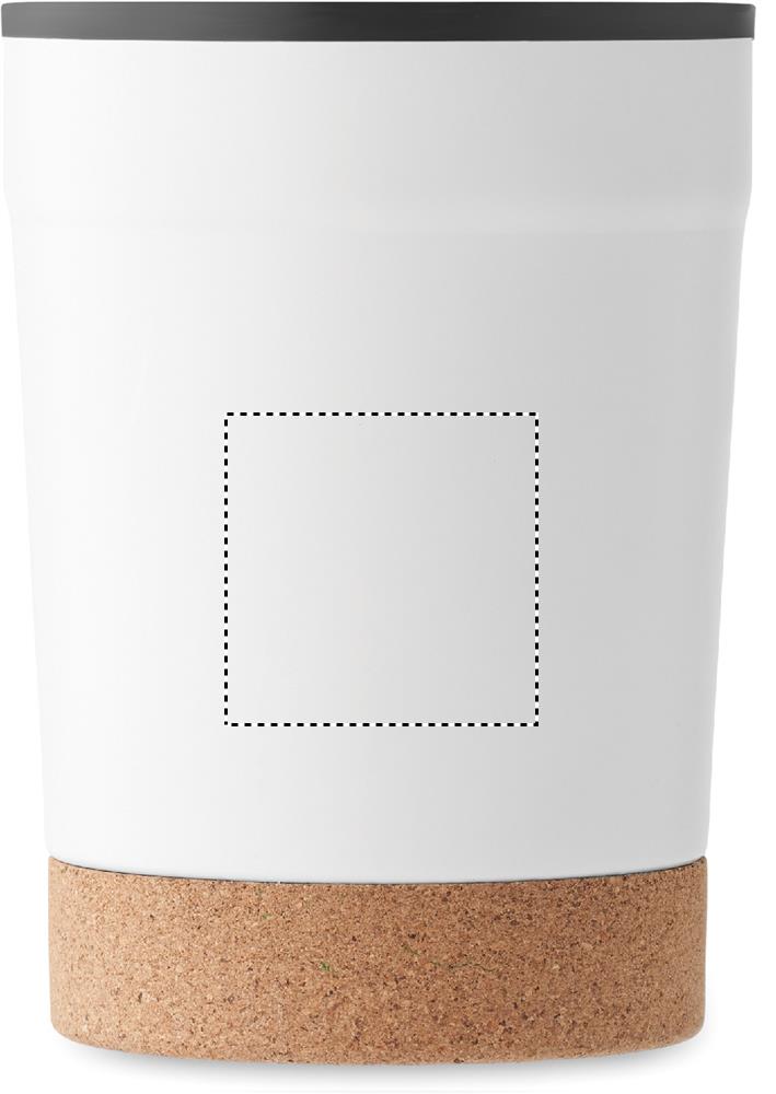 Термокружка с двойными стенками из нержавеющей стали снаружи и полипропилена внутри, пробковое дно и слайдер на крышке. Герметична. Объем: 300 мл.