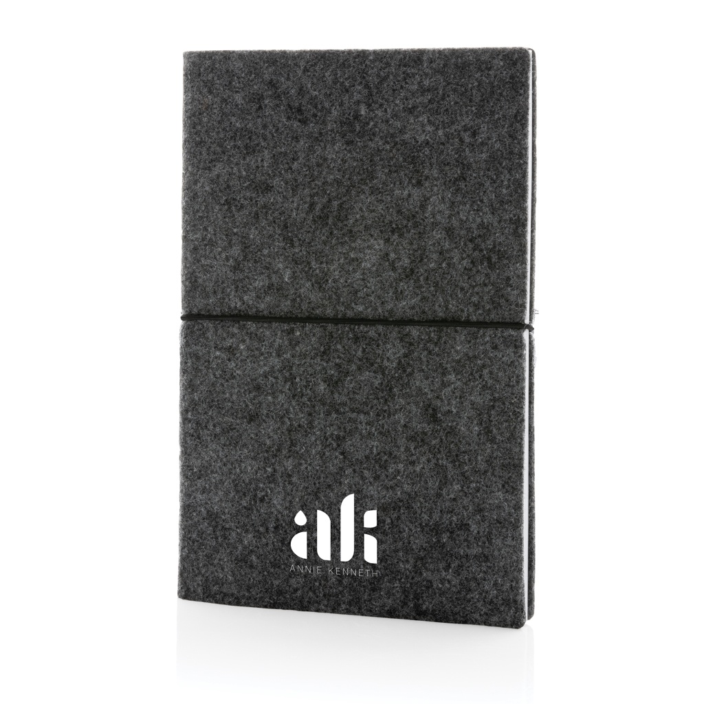 Тетрадь формата А5 в мягкой обложке из переработанного фетра, сертифицированная GRS, черный