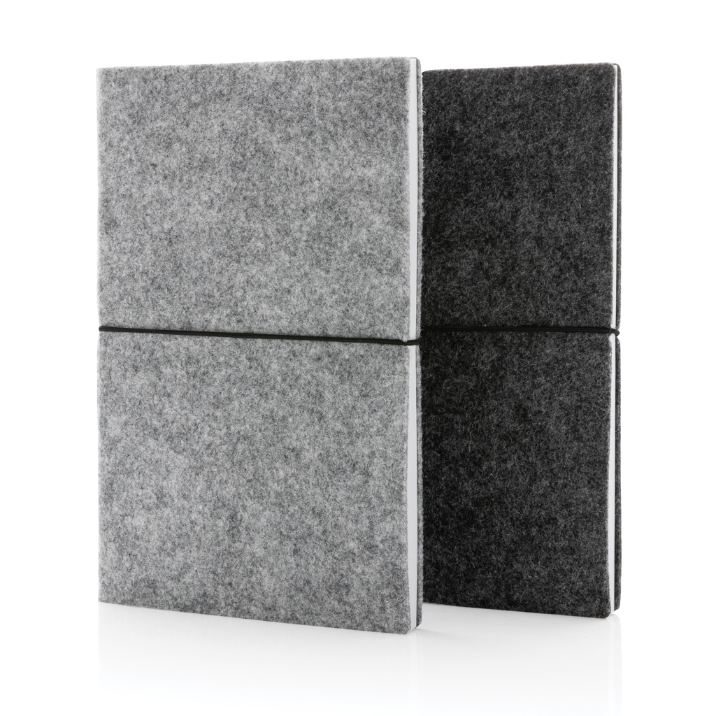 Тетрадь формата А5 в мягкой обложке из переработанного фетра, сертифицированная GRS, серый