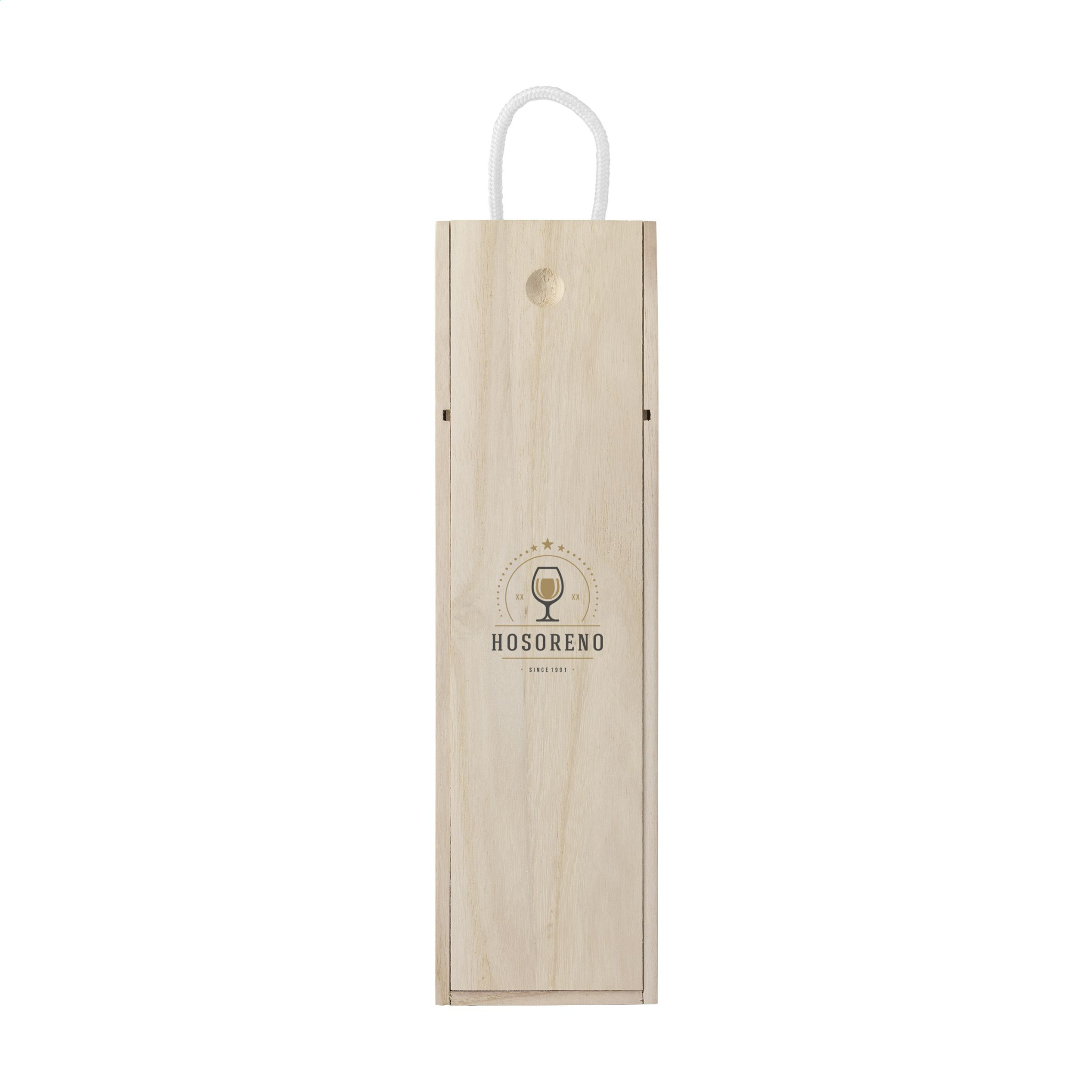 Винная коробка из дерева павловния. С раздвижной крышкой и шнуром. Подходит для 1 бутылки вина (0,75 л). Вино в коробку не входит. Каждый предмет поставляется в индивидуальной коричневой картонной коробке.