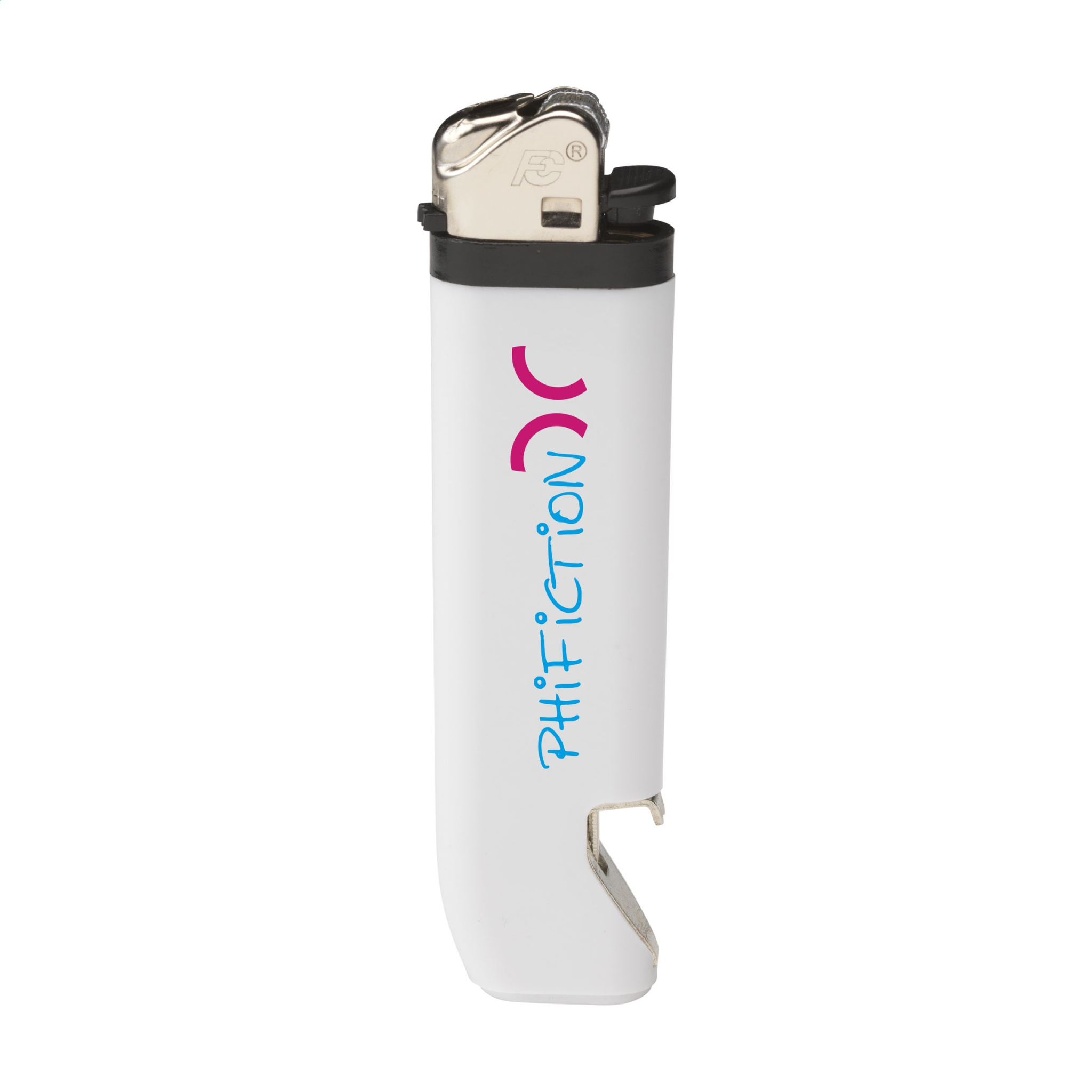 Качественная зажигалка марки Flameclub® с удобной открывалкой для бутылок и регулируемым пламенем. Оснащена замком от детей. Сертификация NEN: EN13869. Сертификация TÜV и сертификация ISO: ISO9994. Зажигалки поставляются только с печатью.