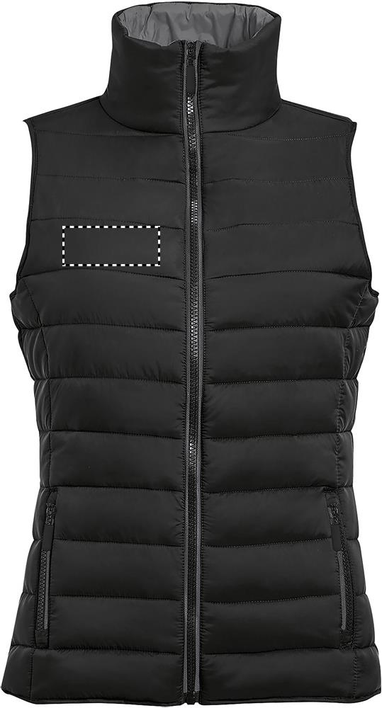 SOL'S WAVE Женский утеплитель/жилет из легкого материала. Это безрукавная версия популярной куртки Ride, но с большей свободой движений. Также можно использовать как дополнительный слой под курткой. Ветро- и водоотталкивающий материал, 2 кармана со стильными молниями и подкладкой в тон, высокий воротник, стильный крой, усиление тон в тон по подолу. Детали ткани: 100% нейлон, линолеум Продается только с принтом
