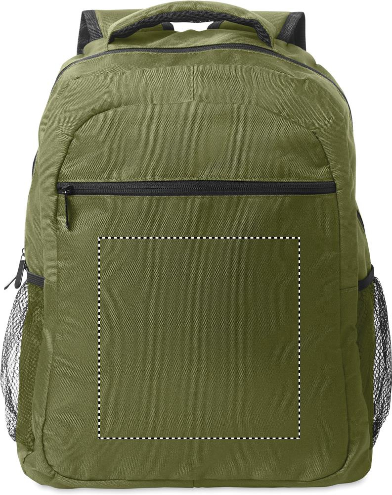 Dataryggsäck för 15 tum laptops i 600D RPET-polyester med vadderat laptopfack inuti, nätfickor på båda sidor och frontficka med dragkedja.