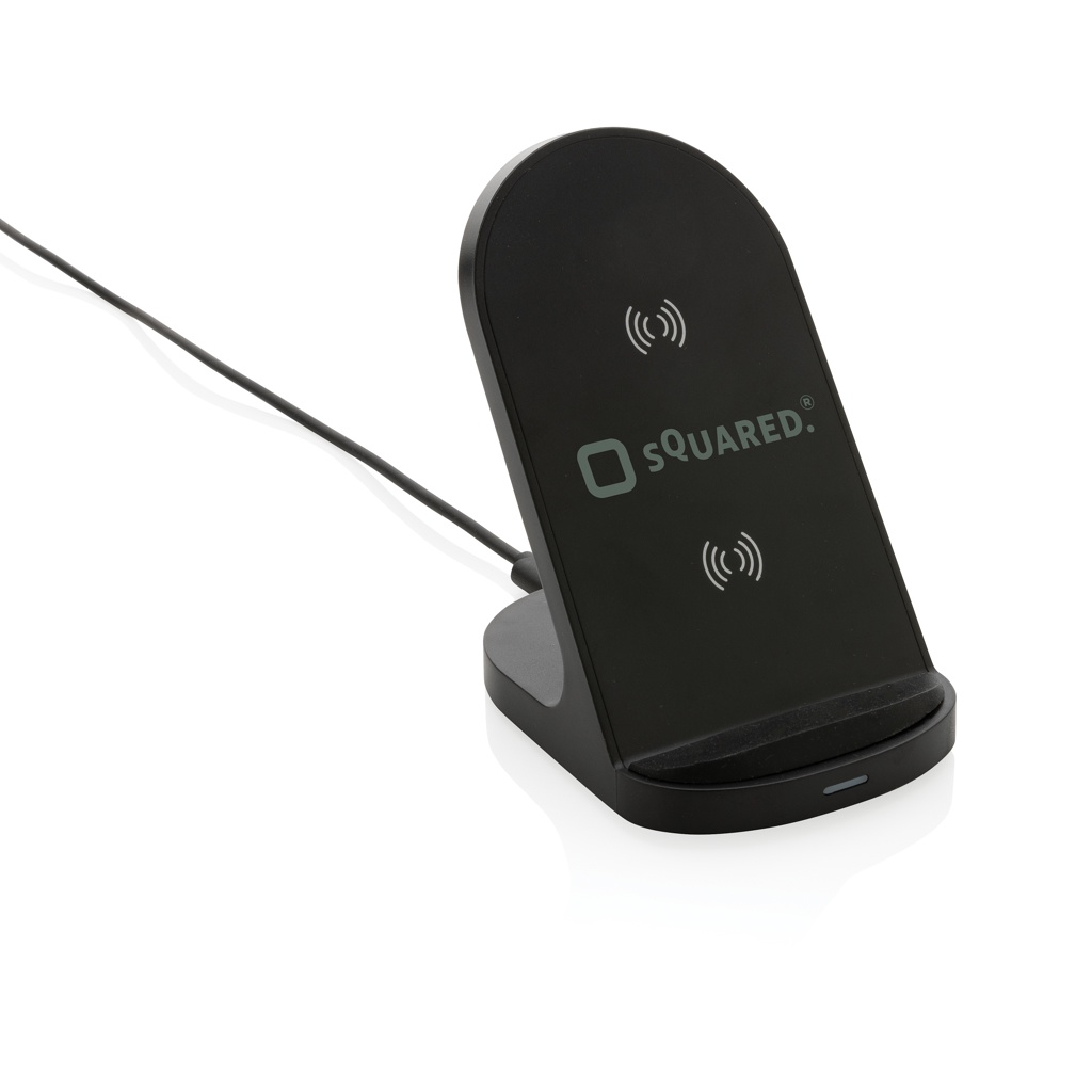 Logotrade presentreklam bild: 15W trådlöst laddningsställ i RCS certifierad plast