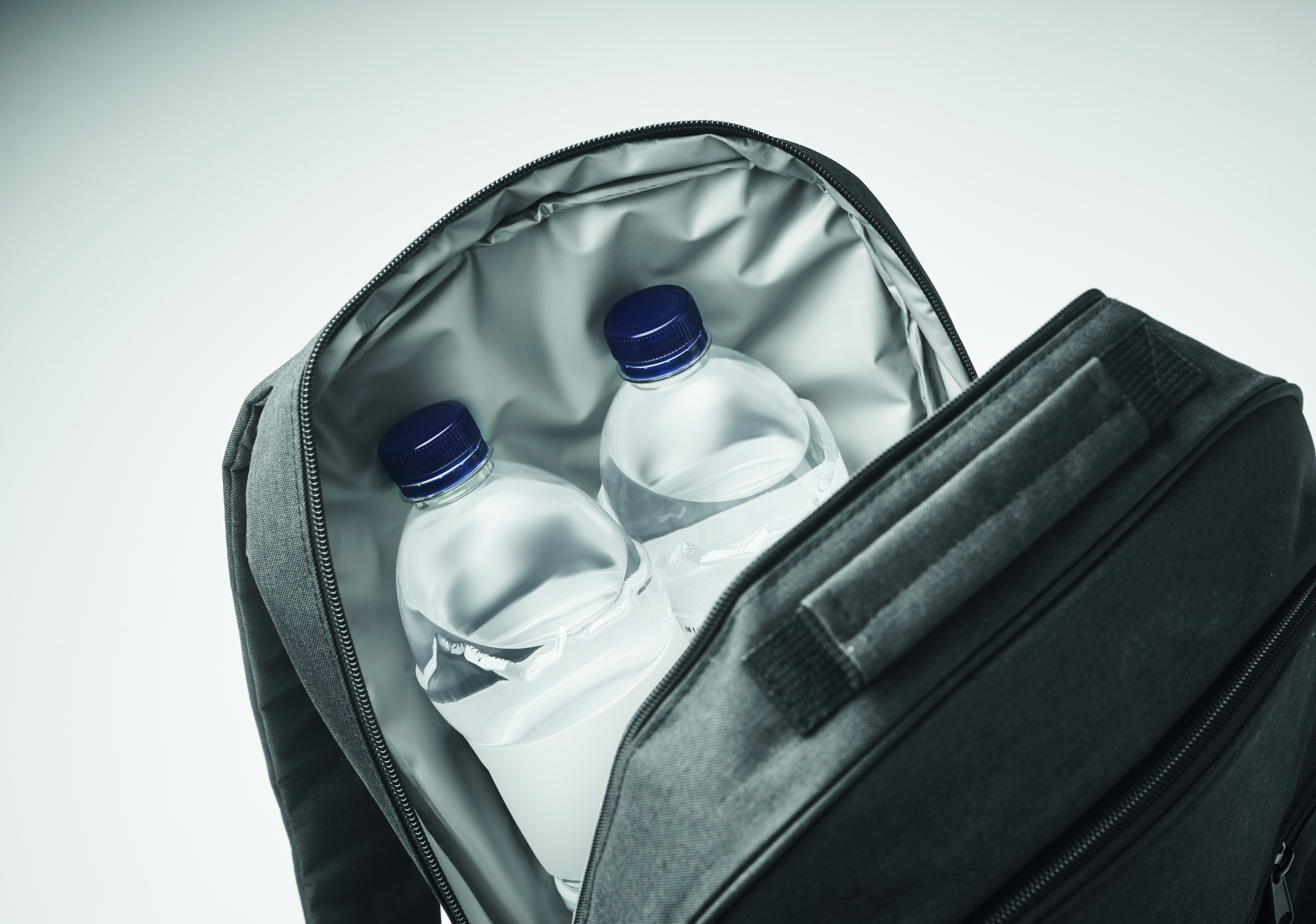 Kombinerad dataryggsäck och kylväska/ryggsäck i 300D RPET med 15-tums fack för laptop. Praktisk till jobbet och att få med lunchlådan. Ficka fram med dragkedja och ett nätfack på sidan.