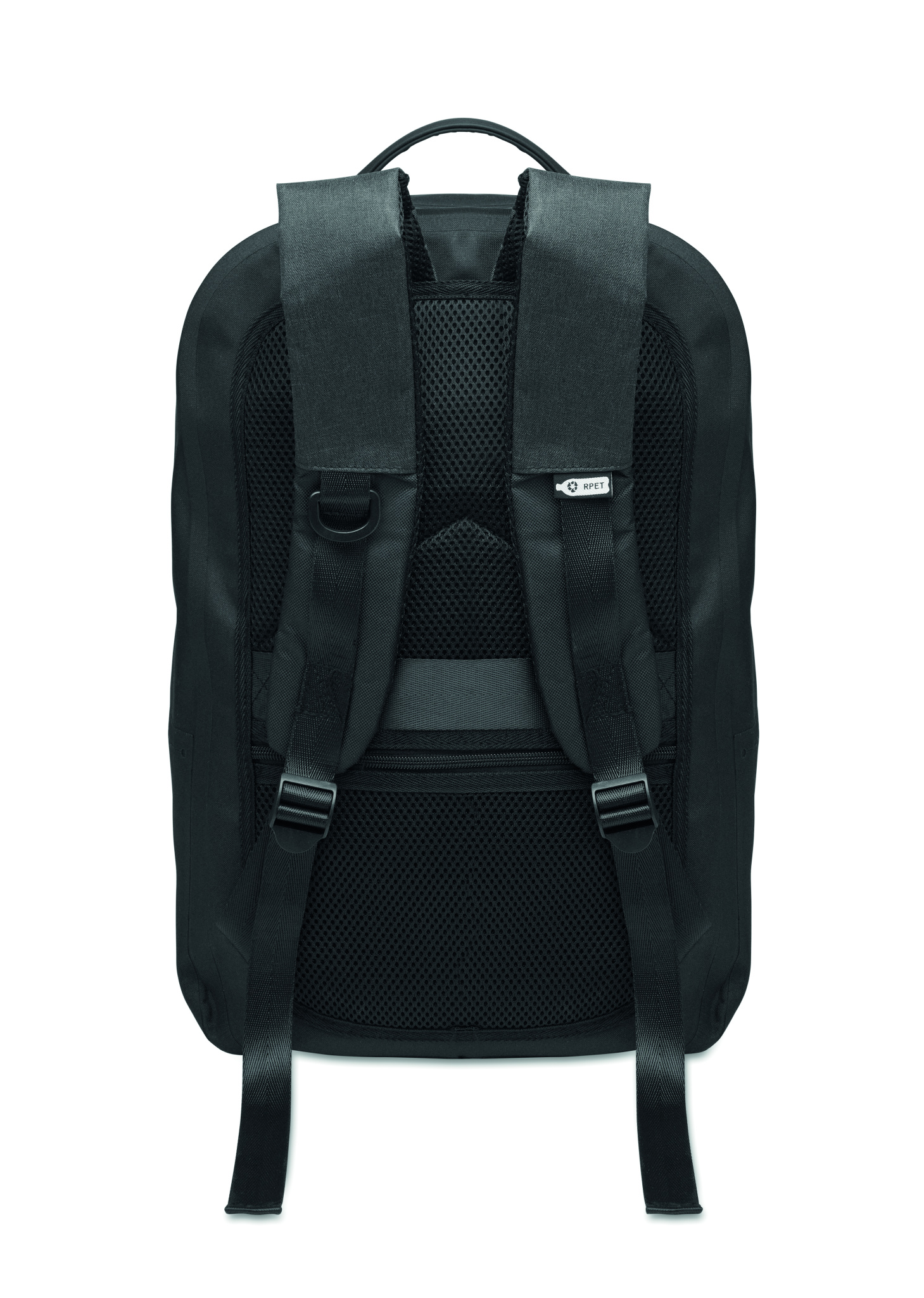 Laptop dataryggsäck 16'' i 300D RPET-polyester och foder i 210D polyester. Vattenavvisande tyg. Dold ficka med dragkedja och trolleyhållare på baksidan. Vadderat invändigt laptopfack, rygg och axelrem i mesh.