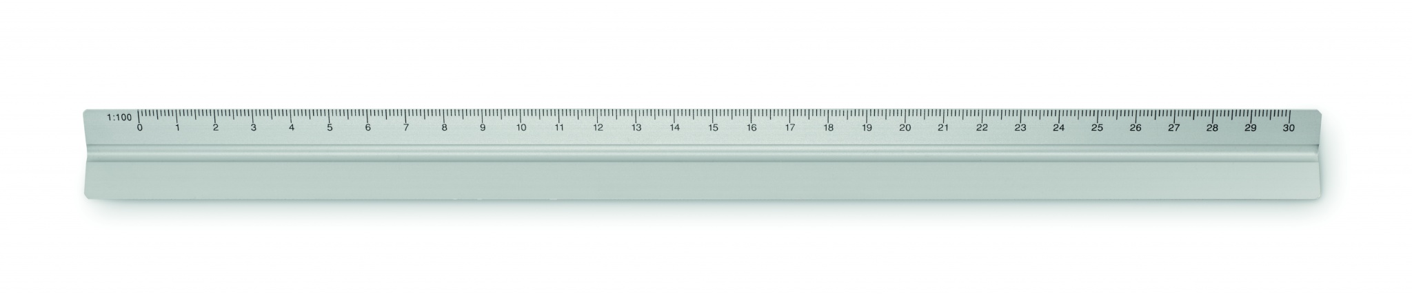 30 cm triangulär arkitektlinjal i aluminium. 3 sidor och 5 olika måttskalor. Skalor: 1:20/1:25/1:50/1:75/1:100