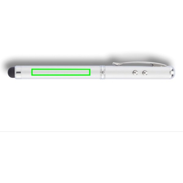 Stilren penna tillverkad av mässing, både laserpekare, lampa, touch samt rollerball.