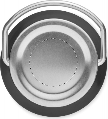Logotrade reklamprodukter bild: 500 ml flaska av återvunnet aluminium med ett lock i rostfritt stål med handtag