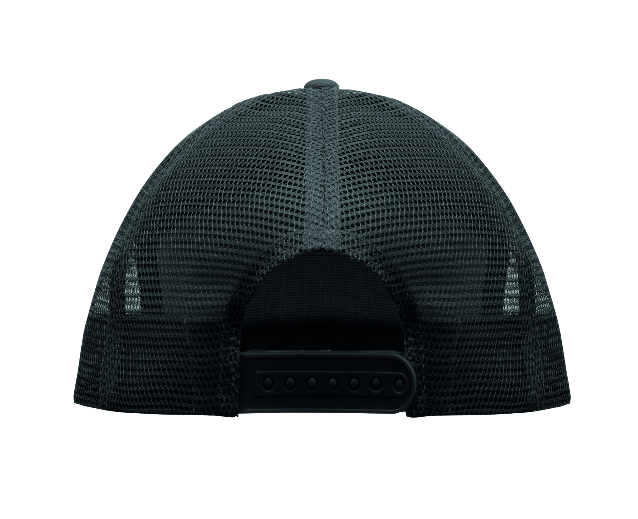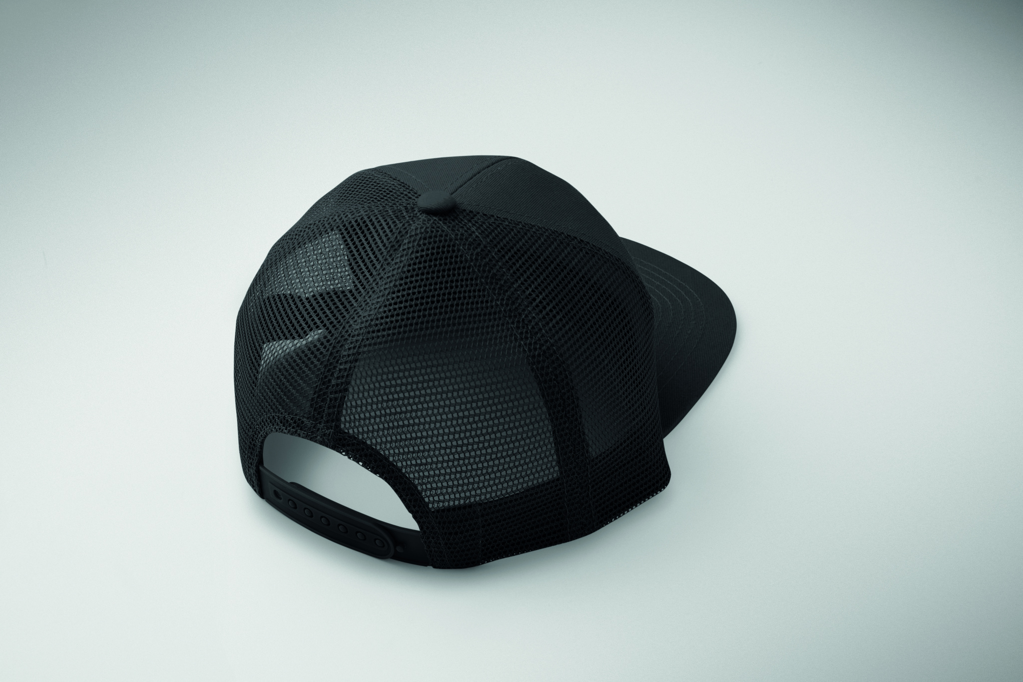7 panelers keps i bomullstwill med baksida i polyestermesh och plastspänne. Platt skärm. 235gsm