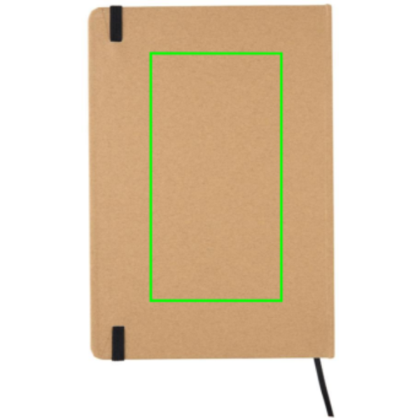 Anteckningsbok med både omslag och insida av kraft papper. 72 blad/144 sidor 70g/m2. Cremefärgat papper. Elastiskt band och siddelare.