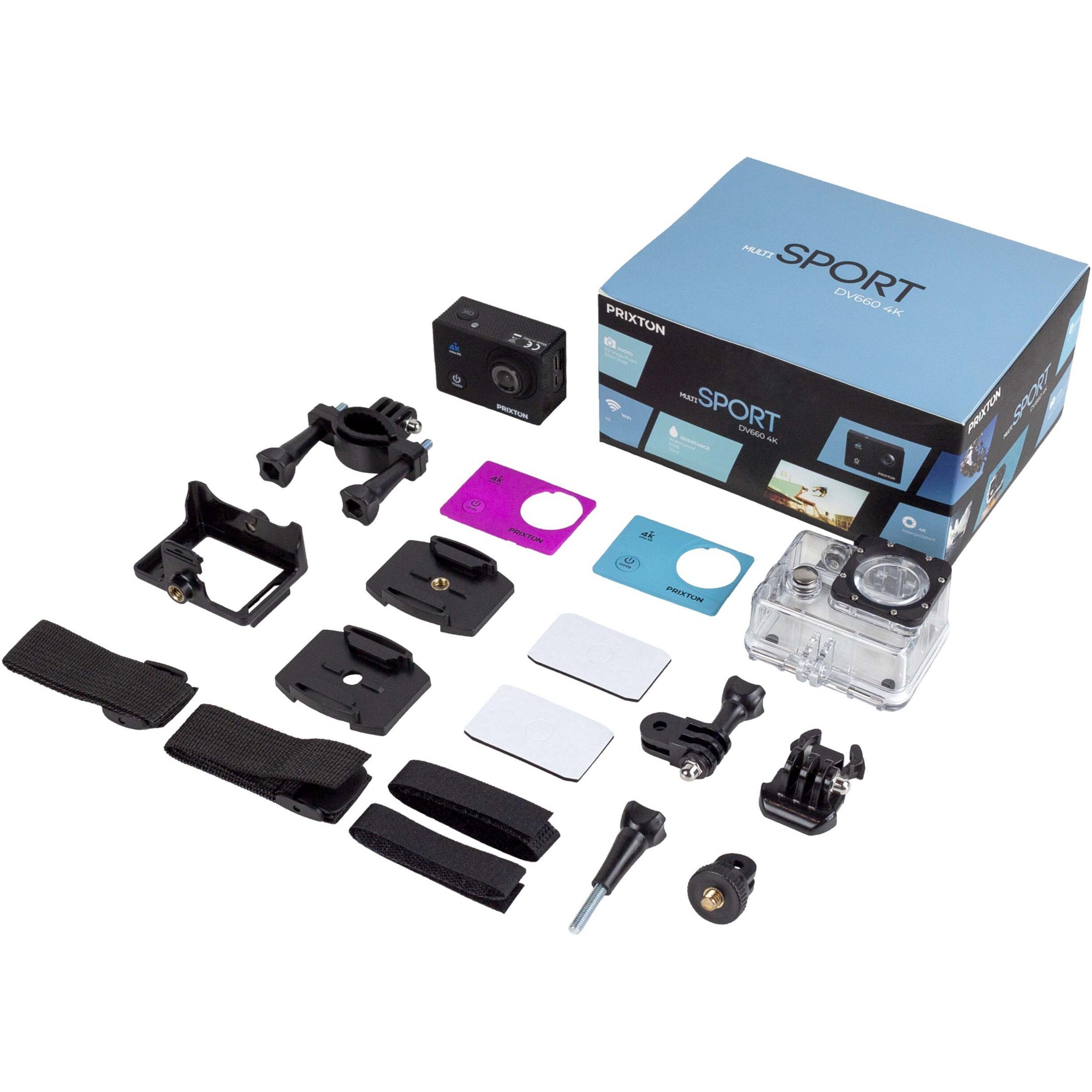 Högsta möjliga upplösning för en actionkamera. Med sin 4K-upplösning kommer du att kunna spela in i perfekt kvalitet alla ögonblick i ditt liv och sport! Med sitt vattentäta fodral, sitt långvariga batteri och hela tillbehörsuppsättningen kommer du att kunna ta den med dig nästan överallt. Tillbehör ingår: hjälmrem, adaptrar, klistermärken, styrhållare. Micro USB-kabel medföljer. Den levereras med en lyxig presentförpackning.