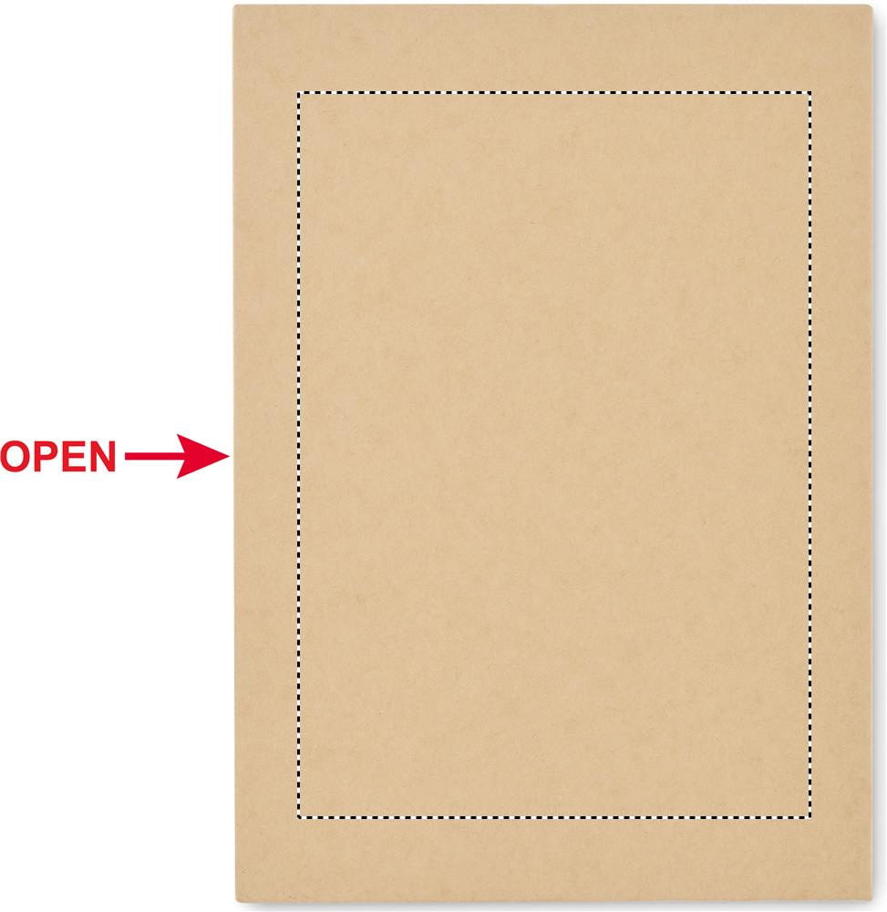 Skriv- & anteckningsset med omslag av återvunnen kartong. 70 linjerade ark av återvunnet material. Anteckningsblock, memolappar och sidmarkörer. Pennor med pappershylsa och ABS-delar, ABS-pennvässare, 2 träpennor, trälinjal 15cm, suddgummi och gradskiva.