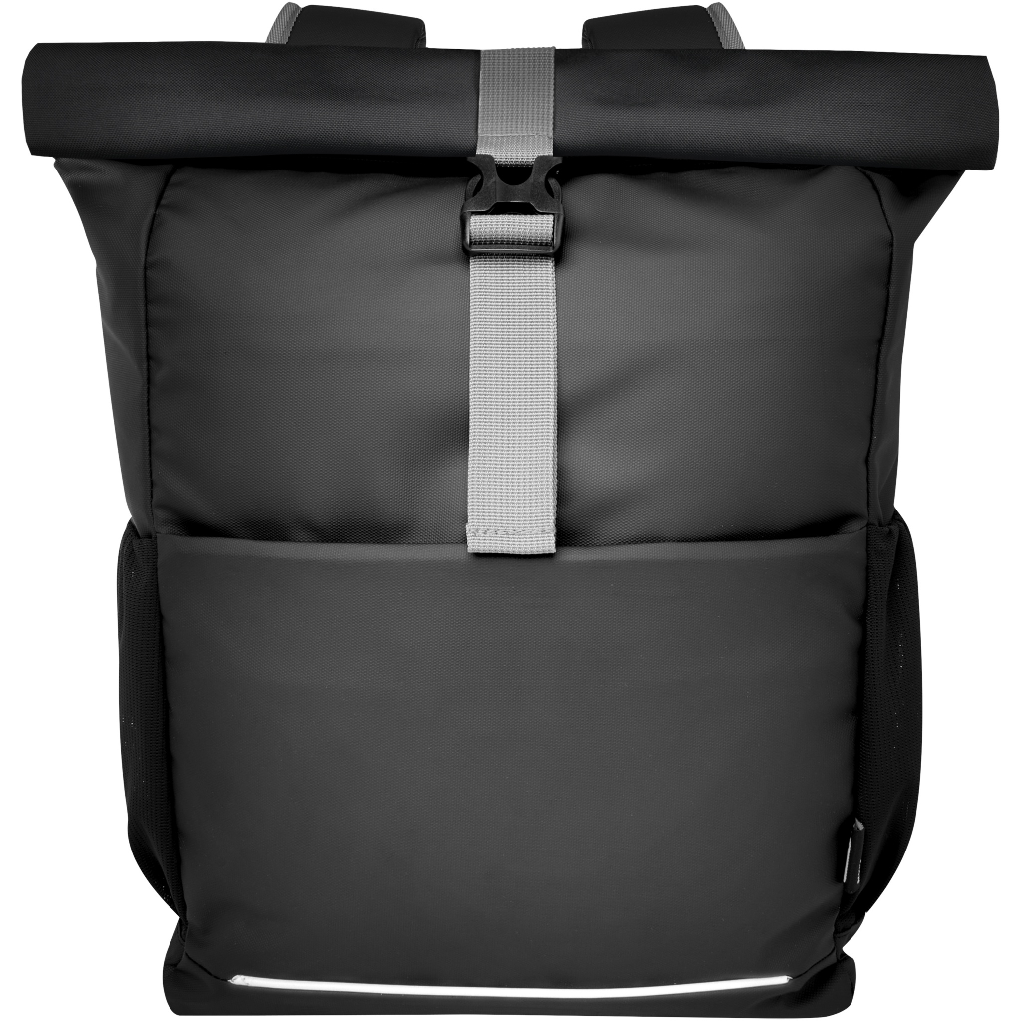 Vattentålig cykelväska med rullöppning tillverkad av GRS-certifierade återvunna material. Den har ett vadderat 15-tums fack för bärbar dator, flera organiseringsfickor, justerbart kardborreband för enkel montering på en mängd olika cyklar och reflekterande sömmar för ökad synlighet. De återvunna GRS-materialen inkluderar huvudtyget, fodret, väven och dragkedjorna. Kapacitet: 20 liter. PVC-fri.