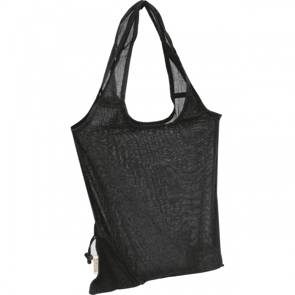 Bomullsväskan gjord av återvunnet material är det perfekta valet för miljömedvetna kunder. Tack vare sin praktiska vikfunktion och plastförslutning är den lätt att förvara och bära. Materialet på 118 g/m² är lätt, hållbart och hållbart – perfekt för dagligt bruk.