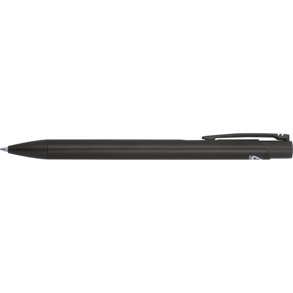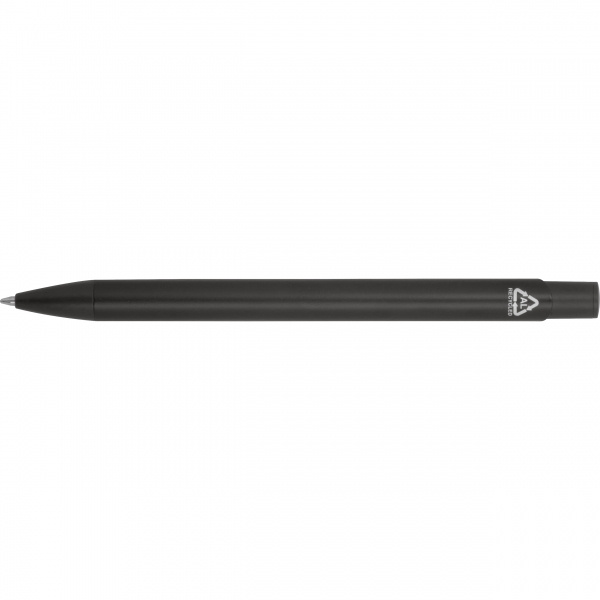 Kulspetspenna i fullfärg tillverkad av återvunnen aluminium med stor refillkapacitet och blå skrift. Din logotyp appliceras med lasergravyr under klämman.
