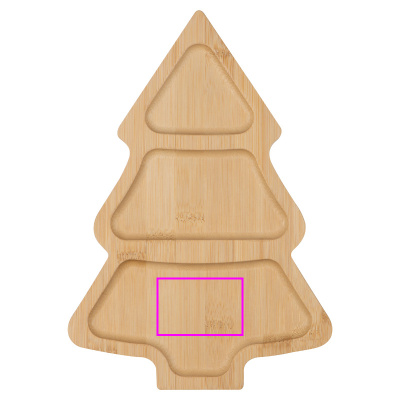 Snackbricka i bambu i form av en julgran med tre fack. En mycket snygg, dekorativ accessoar i advent och jul. Din logotyp kommer att graveras i ett av facken.