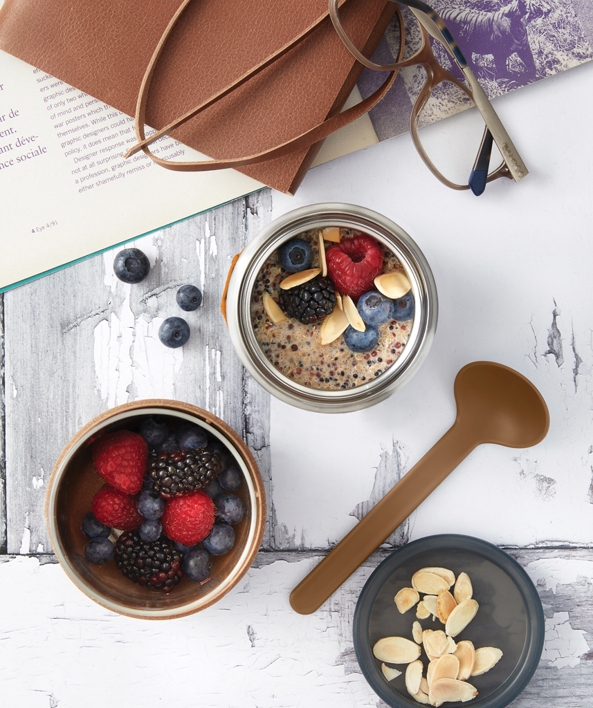 Vi har uppdaterat vår bästsäljande Food Flask genom att lägga till en undersida av rostfritt stål på locket, vilket innebär att maten inte kommer i kontakt med någon plast. Slevskeden innehåller nu träfiber från hållbara källor och produkten är nu förpackad i en presentförpackning. Flaskan är vakuumförseglad för att hålla maten varm i upp till 6 timmar och kall i upp till 8 timmar. Endast handdisk - skeden tål maskindisk