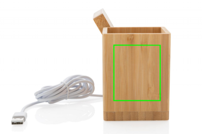 10W trådlös snabbladdare med pennhållare tillverkad av RCS (Recycled Claim Standard) certifierad återvunnen ABS. Totalt återvunnet innehåll: 6% baserat på total produktvikt (inkl. bambubasen). Utsidan i bambu är tillverkad av FSC 100 bambu. 120cm lång type C laddningskabel i RCS certifierad återvunnen TPE medföljer. Levereras i FSC mix kraft förpackning. Type-C Input 5V/2A; 9V/1.67A. Wireless output 5V/1A;9V/1.1A (10W) Registrerad design®