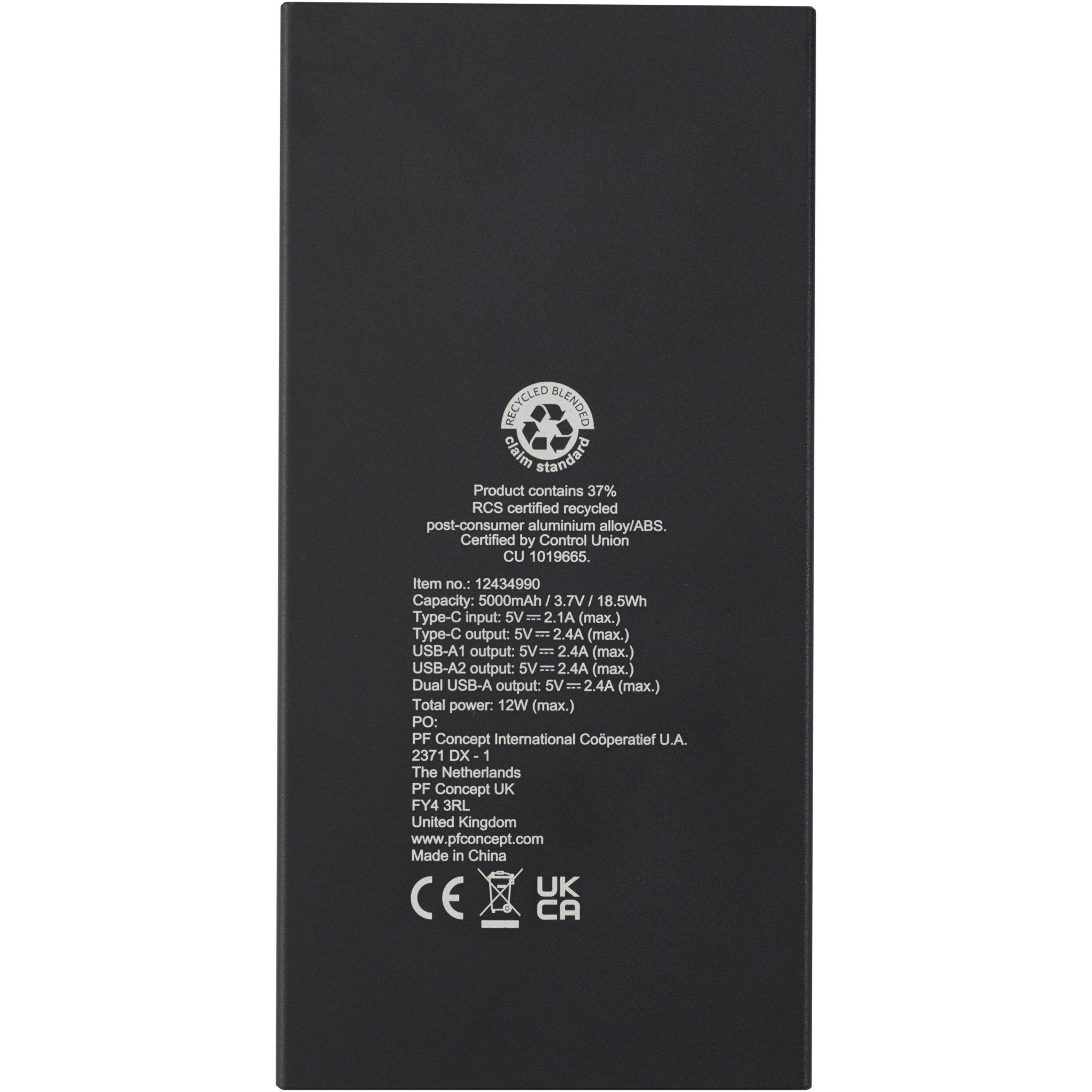 Den eleganta powerbanken Connect av återvunnen aluminium med 5 000 mAh ser till att du alltid har ström var du än är! Denna högkvalitativa och tunna powerbank med litiumpolymerbatteri har en typ C-ingångsport på högst 5 V/2,1 A, en typ-C-utgångsport på max. 5 V/2,4 A och 2 x USB-A-utgångar på 2,4 A/5 V. Levereras med en användarhandbok, en 30 cm USB-A till typ-C-laddningskabel på högst 2 A och förpackad i en låda av 100 % återvunnet kraftpapper med ett färgglatt klistermärke.