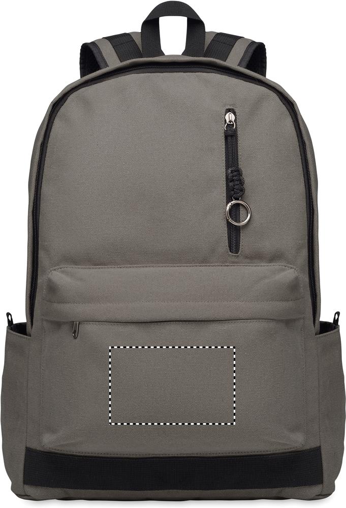 Logotrade profilreklam bild: En 15-tums laptopryggsäck tillverkad av återvunnen förkonsumentbomull med anpassningsbar tryckning