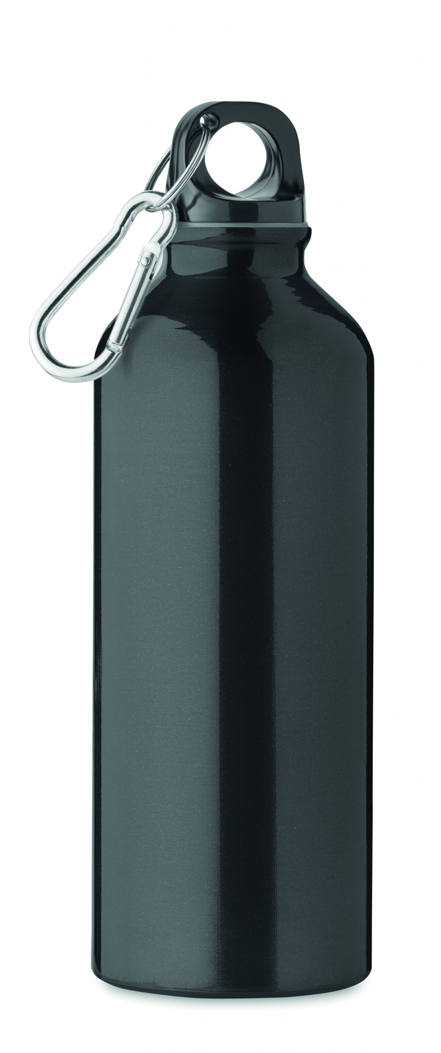 Enkelväggig flaska i återvunnen aluminium med karbinhake. Kapacitet: 500 ml. Läcker inte. Karbinhaken är inte avsedd för klättring (icke yrkesmässig användning). Sublimationstryck finns endast på vit produkt.