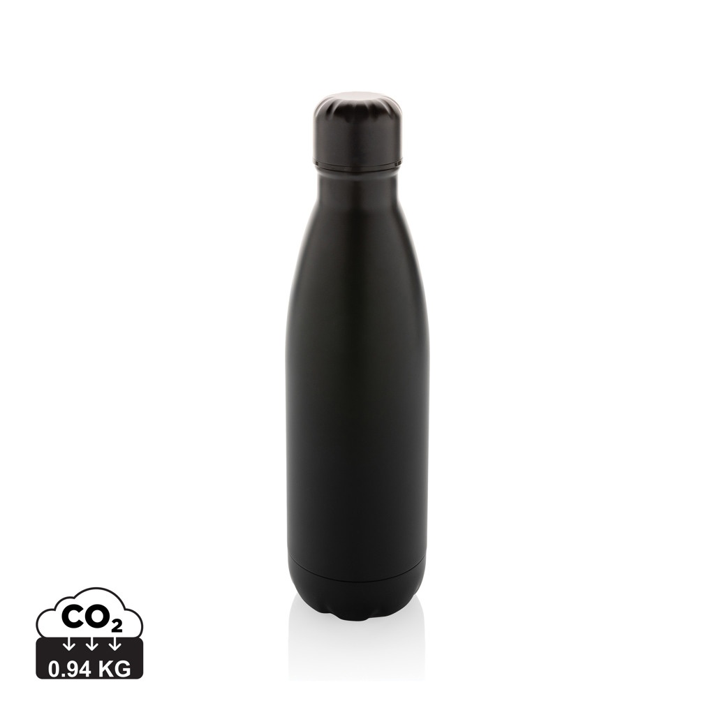 Höj ditt dagliga vattenintag med den här flaskan i stainless steel med enkelvägg. Flaskan är endast lämplig för kalla drycker. Med en bas som passar i de flesta mugghållare. Tillverkad med RCS (Recycled Claim Standard) certifierade återvunna material. RCS-certifieringen garanterar en fullständigt certifierad leveranskedja för de återvunna materialen. Totalt återvunnet innehåll: 84% baserat på total produktvikt. BPA-fri. Volym: 500 ml. Levereras i FSC®-certifierad kraftförpackning.