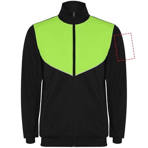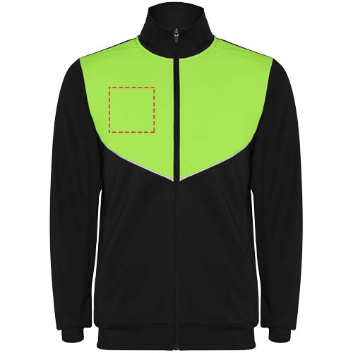 Träningsoverall i lätt och elastiskt tyg. Jacka med kontrasterande färg och sömnadsband på bröstet. Hög krage med kontrasterande sömmar. Dragkedja mitt fram. Sidofickor. 2 x 2 ribbade muddar och midja. Byxor med elastisk linning och dragsko. Kontrasterande sidostycke med sömnadskant. Dragkedja i fåll.