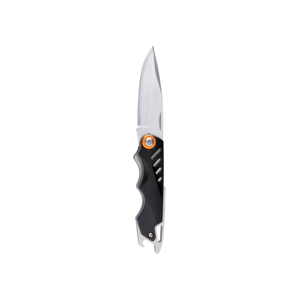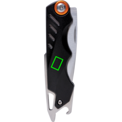 Ultrastark kniv med 4 funktioner. Med aluminiumhölje och verktyg i stainless steel. Inkluderade verktyg: hopvikbar klinga, liner lock-låsfunktion, bältesklämma, flasköppnare.
