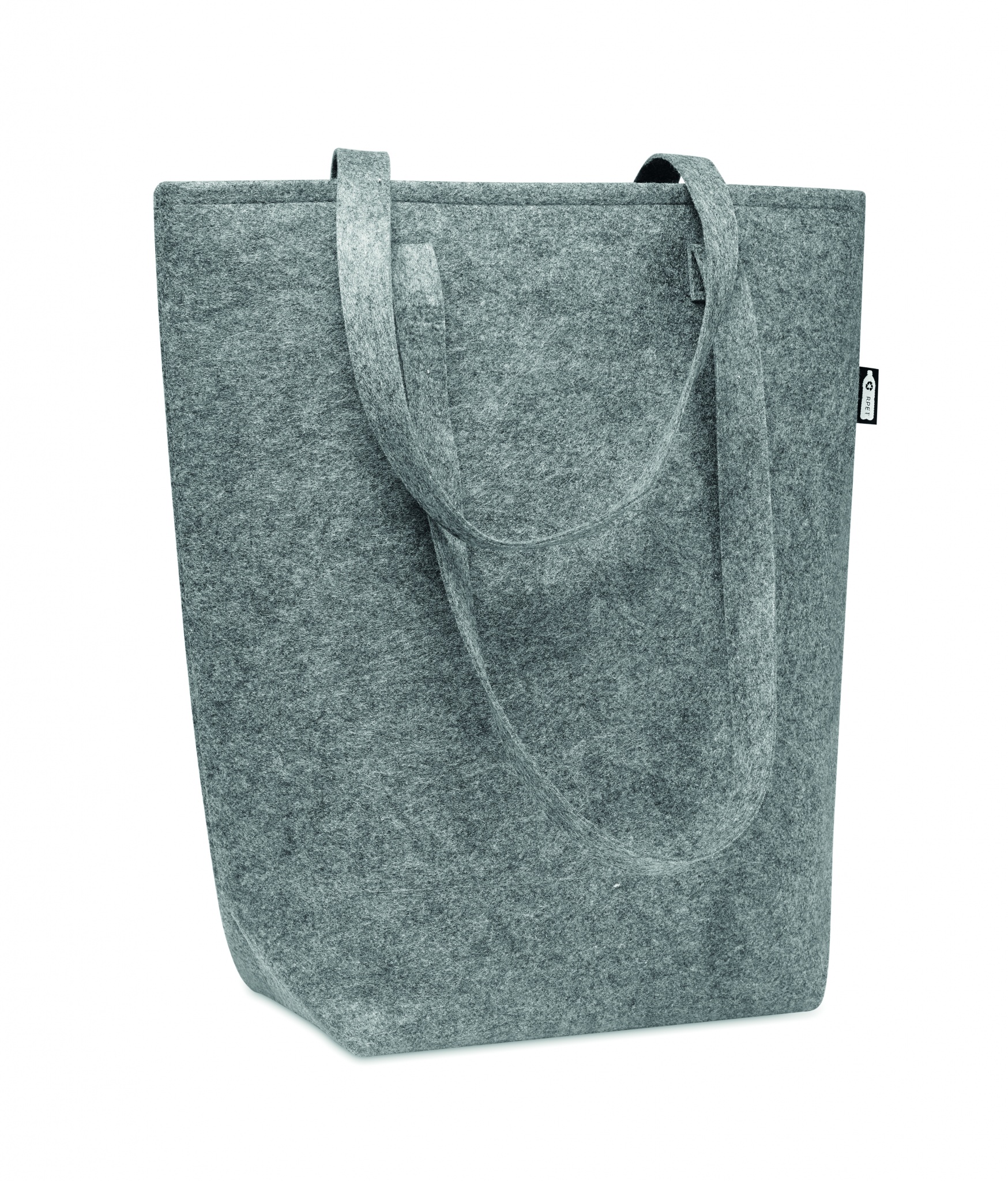 Snygg väska i kraftig RPET filt med långa handtag och bälg i botten. Filtens tjocklek: 2 mm.