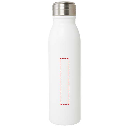 RCS-certifierad vattenflaska med enkelvägg av rostfritt stål med ett skruvbart, spillsäkert lock och en hållbar bärögla av zinklegering. BPA-fri, testad och godkänd enligt tysk lagstiftning om livsmedelssäkerhet (LFGB). Testad och godkänd för ftalat-innehåll enligt REACH-förordningen. Passar de flesta standard bilmugghållare. Volymkapacitet 700 ml. Handdisk rekommenderas. Levereras i en presentförpackning av återvunnen kartong.