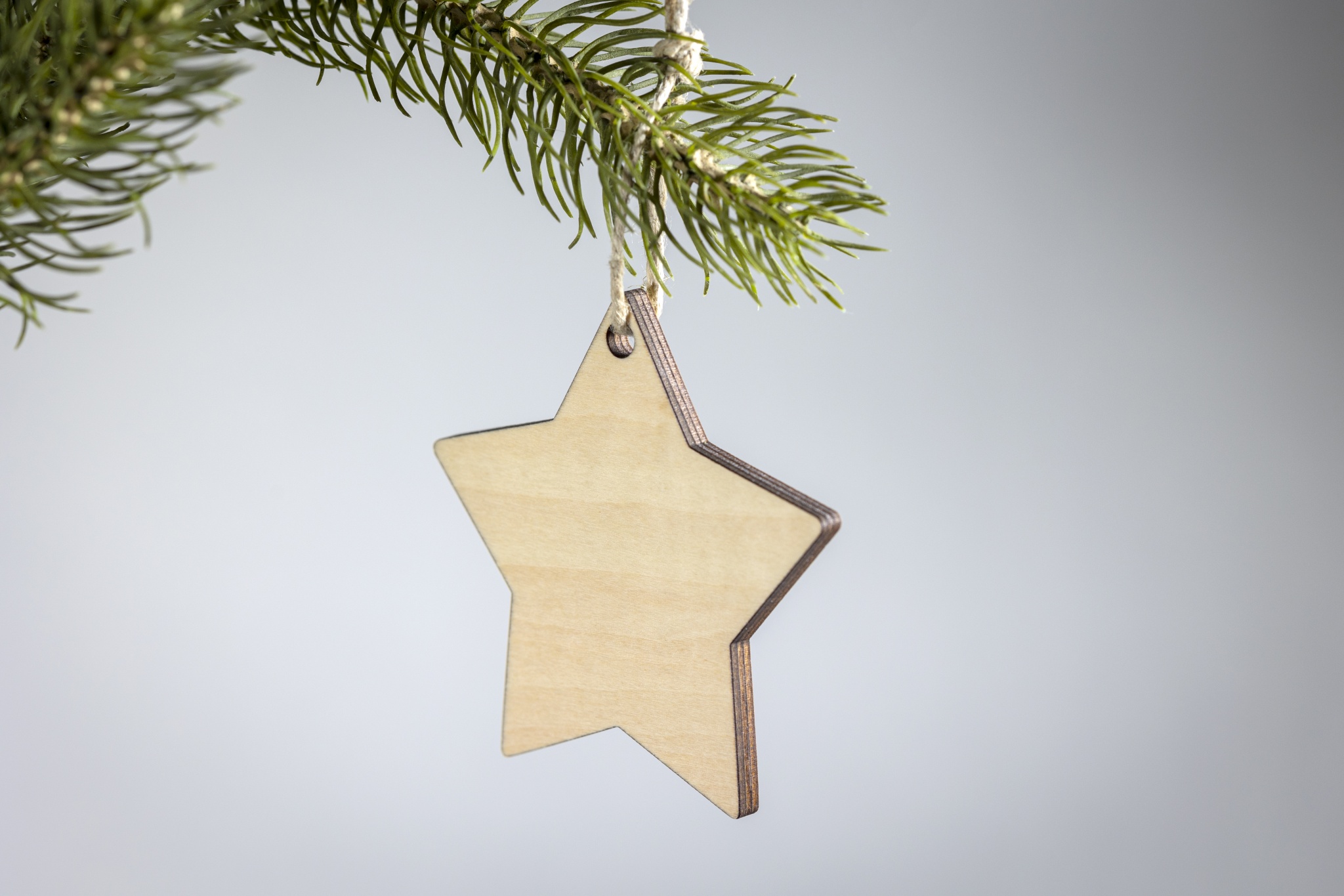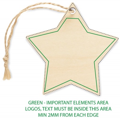 Julprydnad i plywood med jutetråd för sublimering i stjärnform. Vitt tryck är inte möjligt.