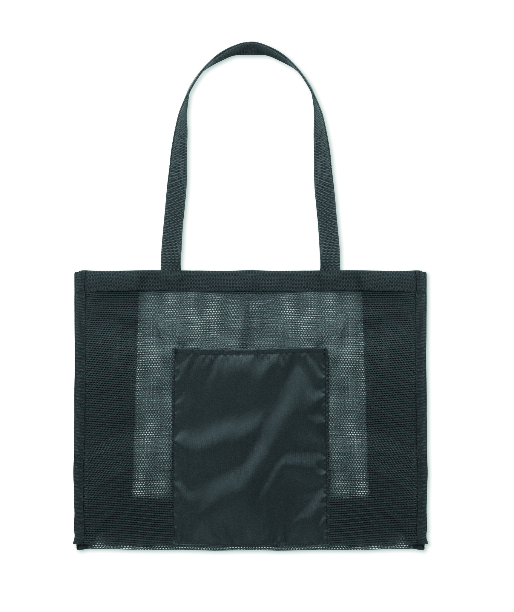 Kasse av RPET-mesh och 210D RPET med korta handtag. Innehåller stor öppen framficka. Volym 20L, last upp till 10 kg.