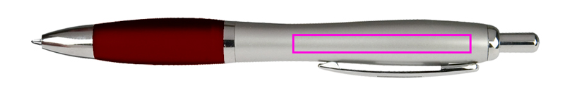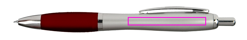 Kulspetspenna med blå skrivpåfyllning med stor kapacitet och färgkontrast soft touch greppzon. Vi trycker din logotyp på höger sida av klippet.