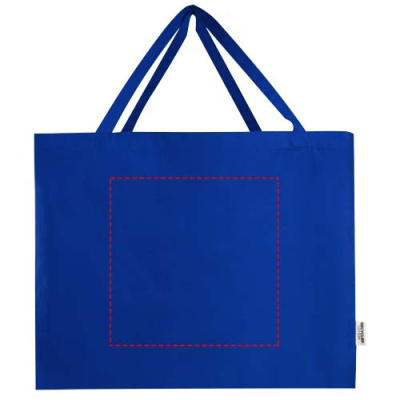 Tygväskan Odessa, som är tillverkad av 100 % GRS-återvunnen bomull, är utformad för att vara bekväm att bära med sina 30 cm långa axelhandtag och stora huvudfack med tygkil. Oavsett om det gäller att bära runt på tunga böcker eller matvaror är den här väskan utformad för att täcka alla behov. Tryckmetoderna för denna tygväska är också certifierade, vilket säkerställer att hela leveranskedjan är transparent och certifierad. Bomullen på 220 g/m² garanterar hållbarhet och tillförlitlighet, vilket gör att väskan klarar en vikt på upp till 10 kg. Tillverkad i Indien.