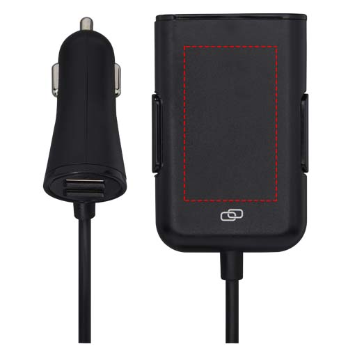 Logotrade reklamprodukter bild: Pilot dubbel billaddare med QC 3.0 dubbelt förlängd baksätesladdare