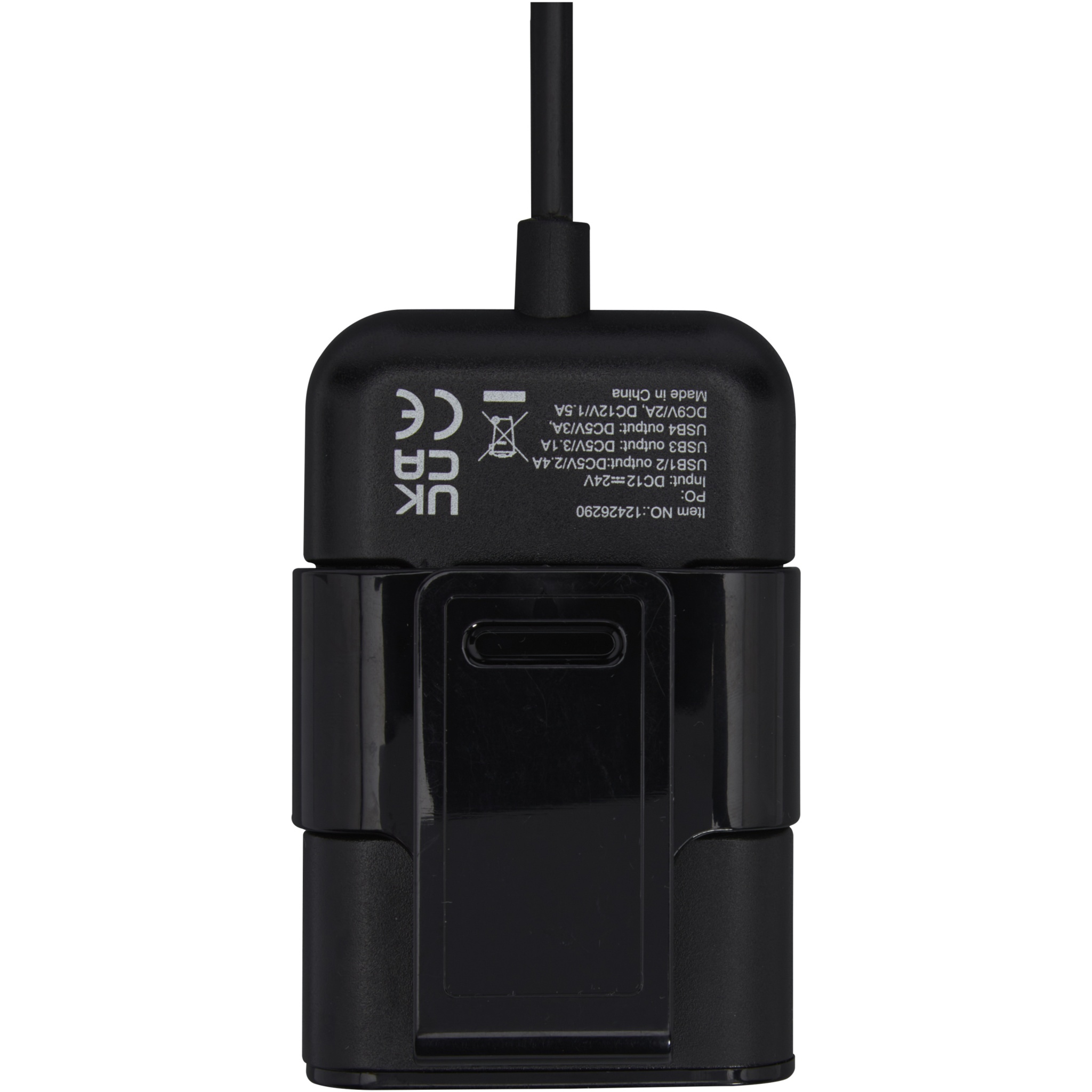 Denna laddare är utformad för familj och resor och gör det möjligt för passagerare i baksätet och framsätet att samtidigt ladda sina elektroniska enheter medan de är på väg. Universell kompatibilitet för 12/24 V fordon. Qualcomm Quick Charge Protocol 3.0. USB-1/2-utgång: DC 5 V/2,4 A, USB-3-utgång: DC 5 V/3,1 A, USB-4-utgång: DC 5 V/3 A, DC 9 V/2 A, DC 12 V/1,5 A. Kabellängd: 170 cm.