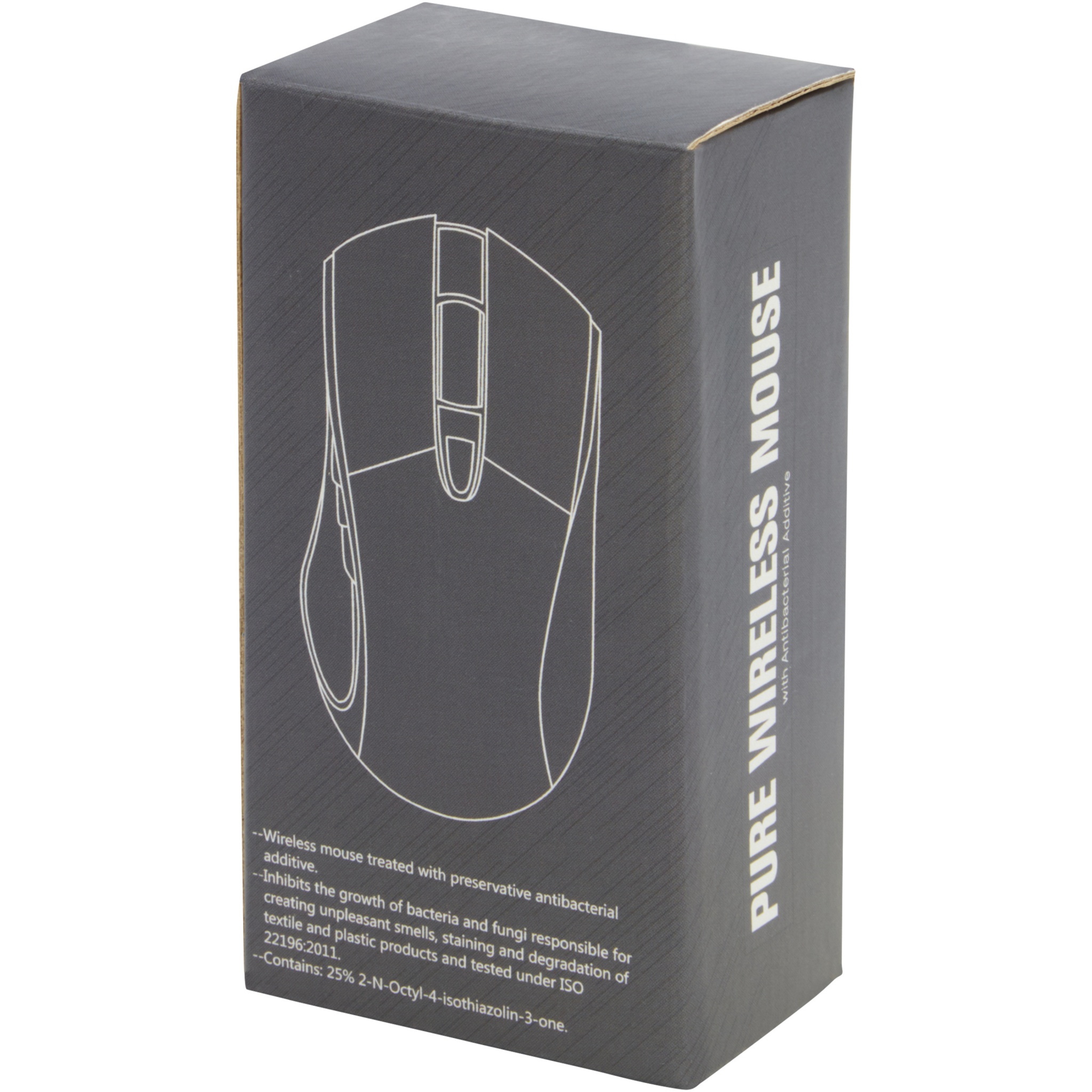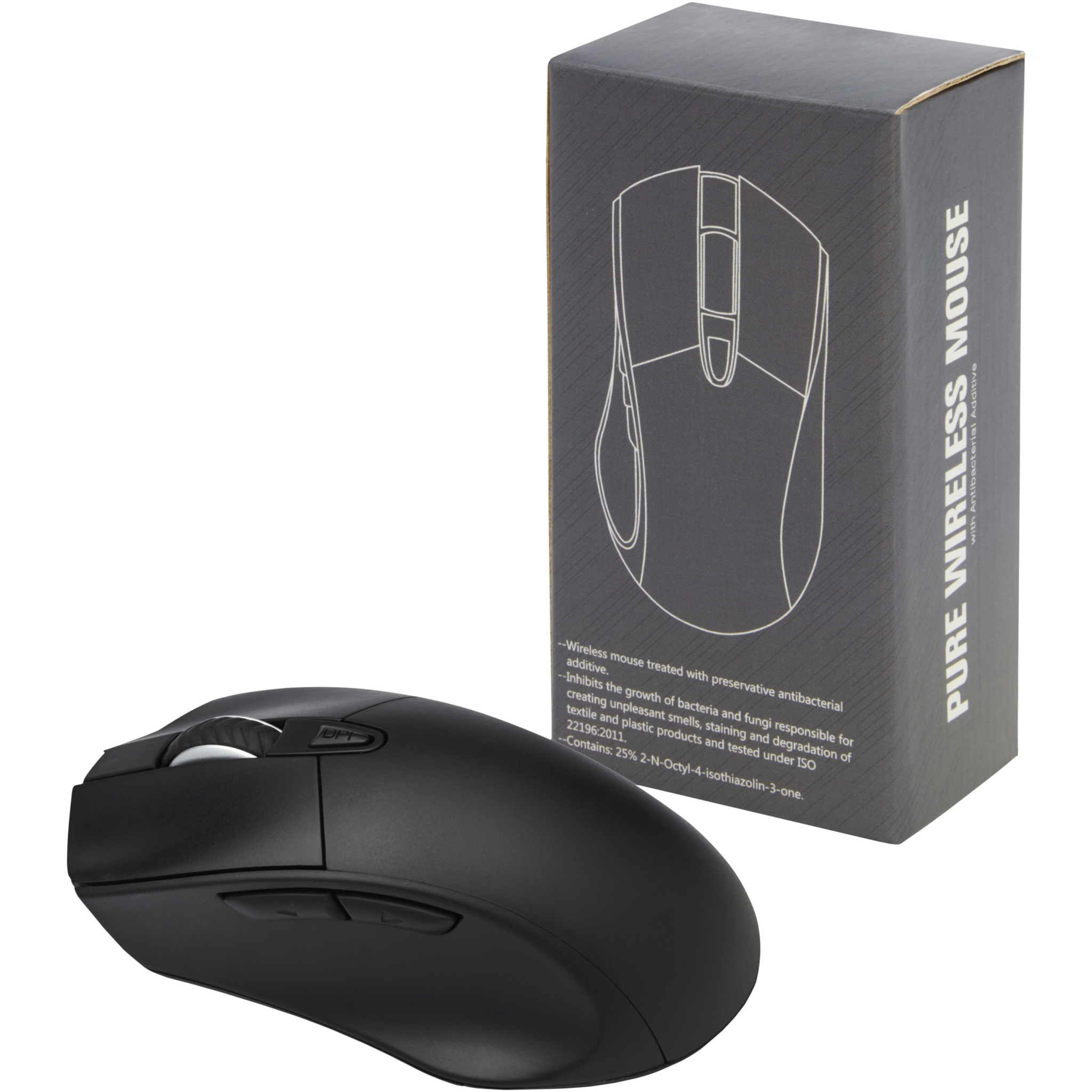 Antibakteriell trådlös optisk mus med ergonomisk design och en DPI-knapp (800/1200/1600) för att justera pekarens precision. Antibakteriell tillsats med hög effektivitet för att hämma tillväxten av bakterier och svamp. Testad enligt ISO 22196:2011. Drivs av 2 AA-batterier (ingår ej). De levereras i en premium-presentförpackning.