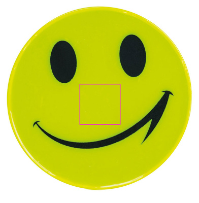 Ett leende för mer säkerhet! Dina små kunder kommer att synas perfekt och säkra med denna reflekterande PVC-dekal, som de kan fästa på väskan, jackan, cykeln, etc. På grund av dess roliga ansikte kommer den troligen att användas av alla. Vi trycker din logotyp på klistermärket. Enkelpackad i polypåse.