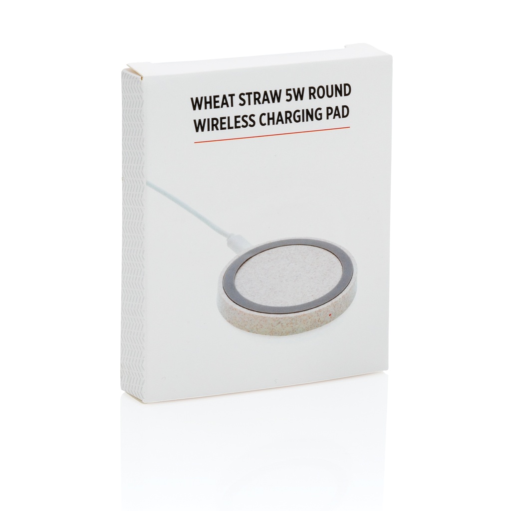Logotrade profilreklam bild: Vetestrå rund 5W trådlös laddningsplatta